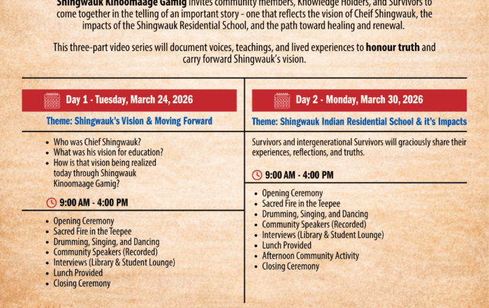 Welcome to Shingwauk Kinoomaage Gamig